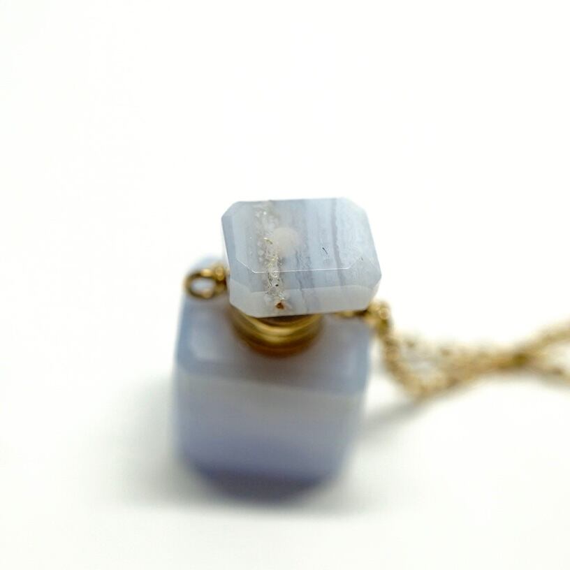 天然石ブルーレースアゲートの香水瓶ネックレス。